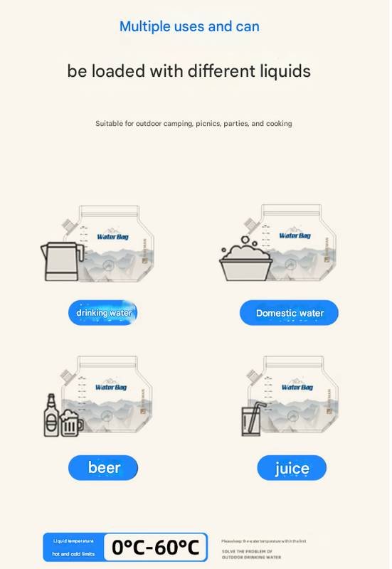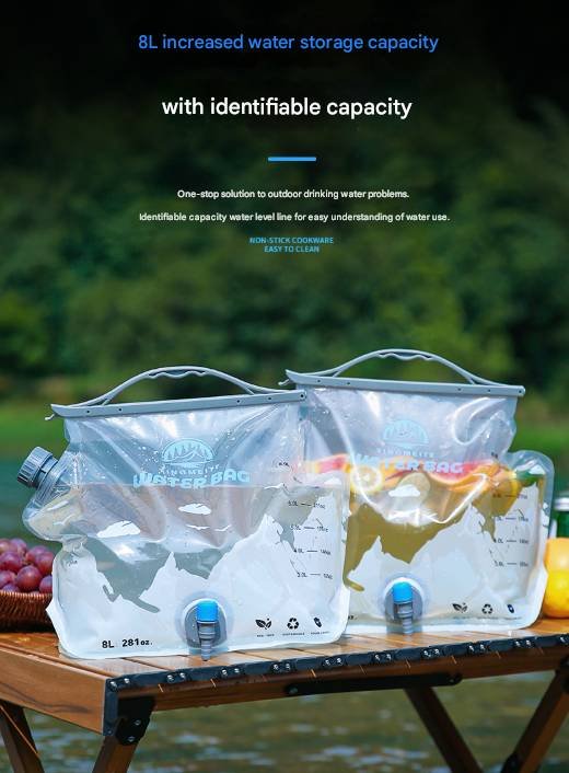Ensure you have a reliable source of fresh water on your next outdoor trip with this 8L Foldable Water Bag. Engineered for convenience and durability, this large-capacity water carrier is an essential piece of equipment for camping, hiking, picnics, and emergency preparedness. Its smart, space-saving design and user-friendly features make it the perfect hydration companion.