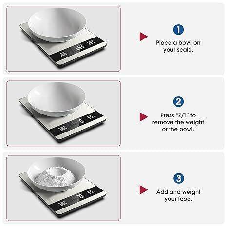 - Tare Function: Allows weighing ingredients in containers by zeroing out the containers weight for accurate measurements.