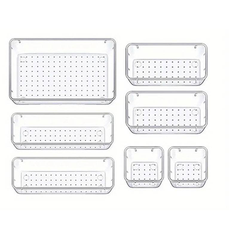 Transform your chaotic junk drawers and cluttered desktops into a masterpiece of organization with our Modular Clear Storage Bin Set. Crafted from premium, high-transparency PS material, these bins offer a crystal-clear view of your essentials, from delicate jewelry and makeup to office supplies and kitchen gadgets. The intelligent grid-based sizing allows you to mix and match different dimensions to fit any drawer or shelf perfectly with four distinct sizes.