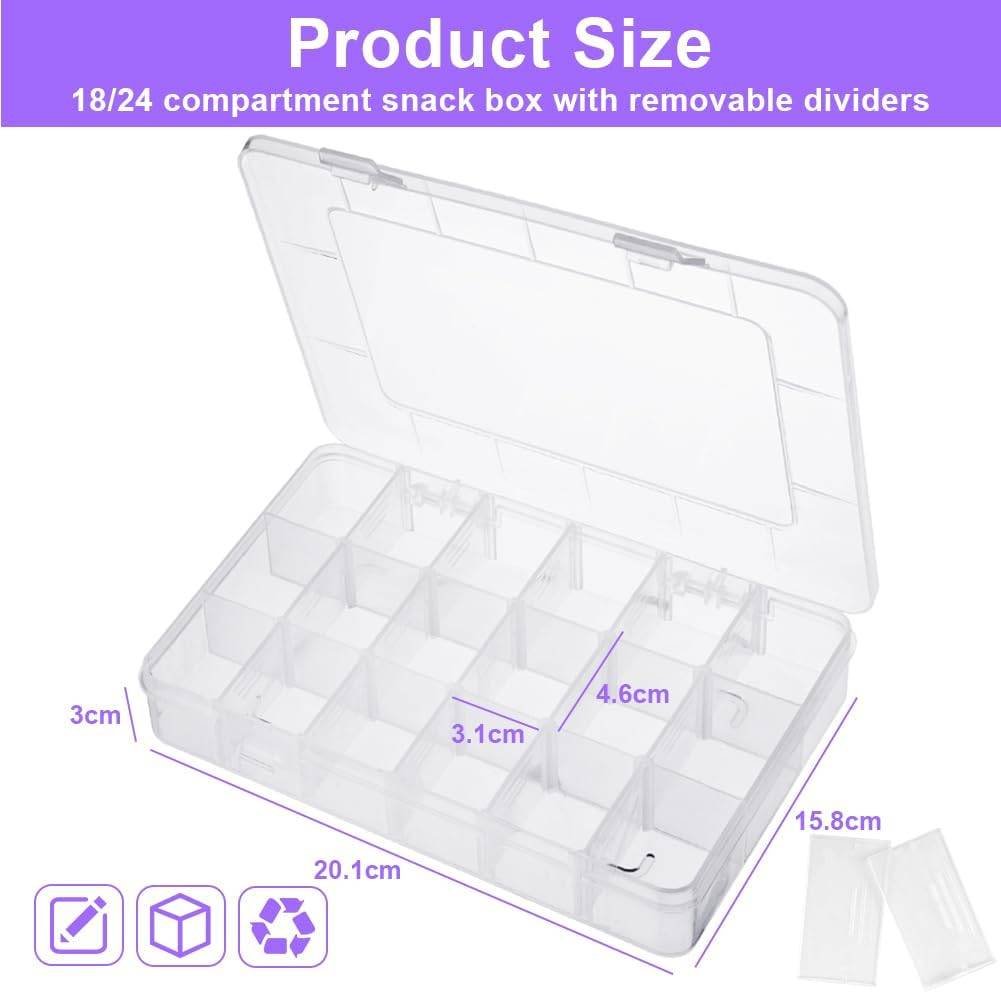 18-Compartment Snack Box, 2 Pieces Snack Plates with Lids for Candy, Nuts, Snacks, Adjustable Plastic Storage Box for Jewelry, Transparent Sorting Boxes 18 compartments-2 pieces