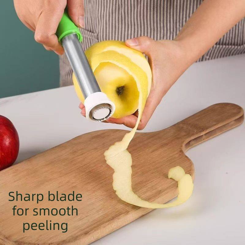 • Dual-Function Design: Why clutter your drawers with multiple tools? This gadget features a retractable corer on one end and a sharp peeler on the side, allowing you to prep apples, pears, and other fruits with a single tool.