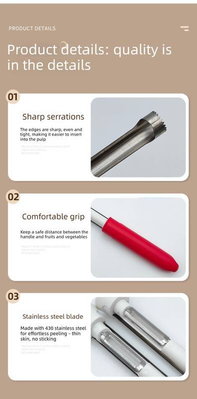 • Sharp Serrated Corer: The circular coring blade features serrated teeth that effortlessly pierce through fruit skin and flesh, removing the core cleanly with a simple twist-and-push motion.