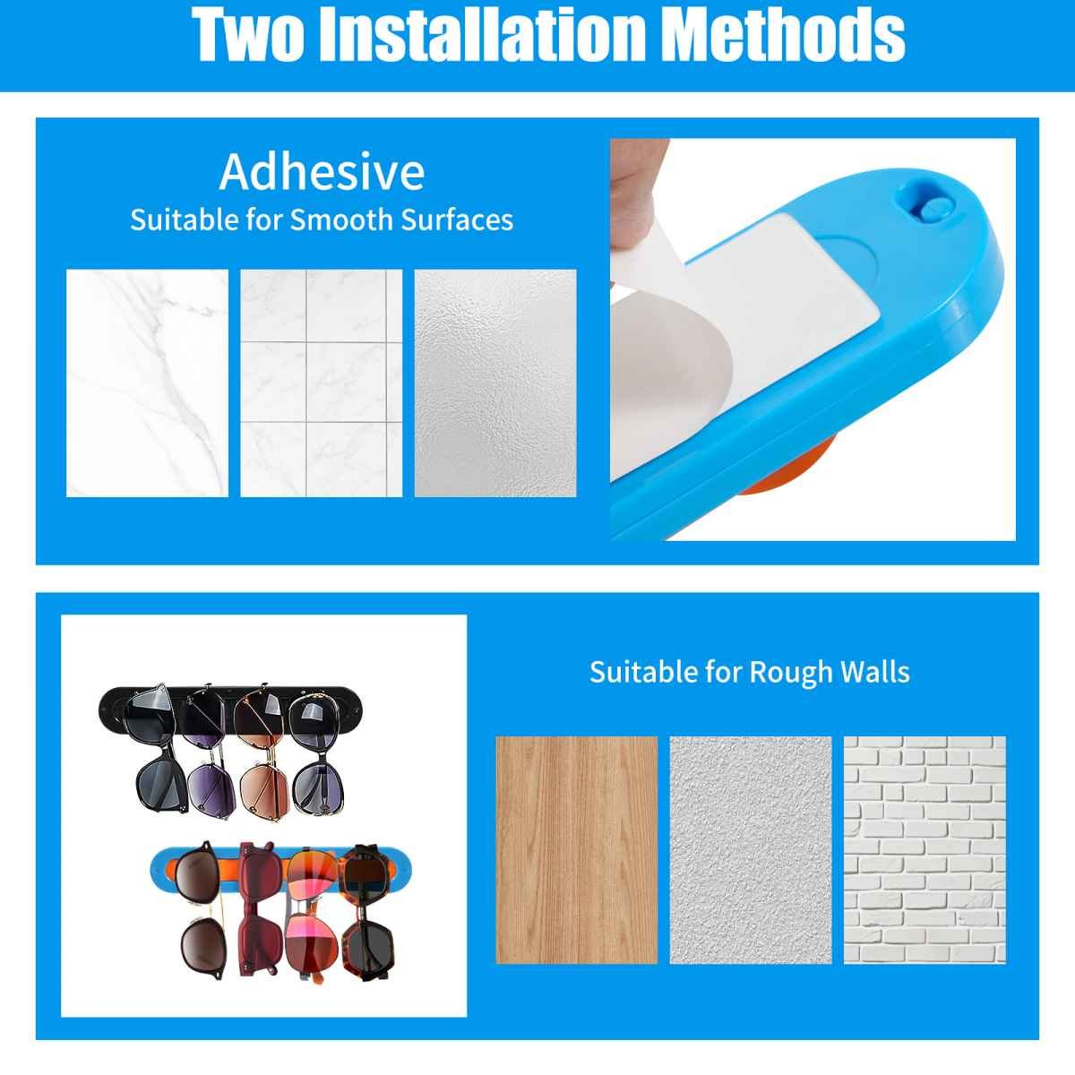 2 Pack Blue Acrylic Sunglasses Holder Wall Mounted Glasses Organizer Rack Self-Adhesive Eyewear Display Stand for Home Office and Entryway