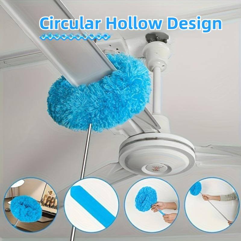 2-Pack Blue Telescopic Electrostatic Duster with 360° Hollow Ring Design – Fan Blade Cleaner, High Reach Dust Removal, Multi-Purpose