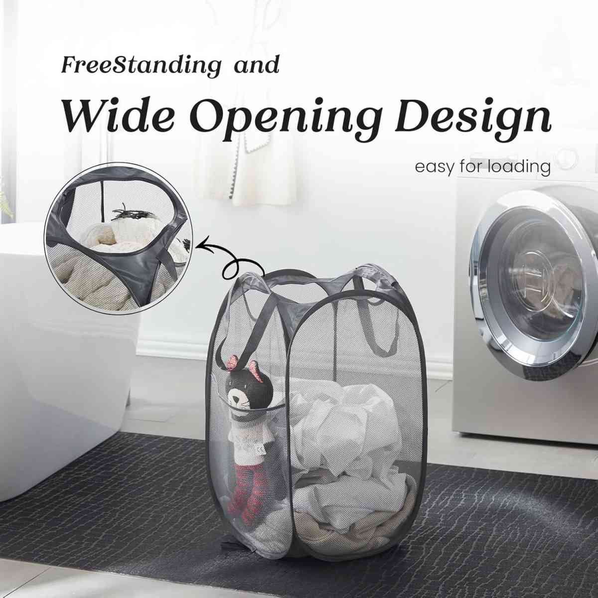 • Package Includes: 2 x Pop-Up Mesh Hampers