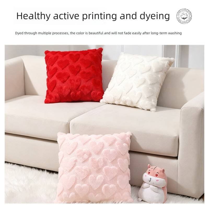 2-PCS Pink 45x45cm Heart Pattern Plush Pillow Cover with Insert – Soft Textured Decorative Cushion for Living Room or Bedroom