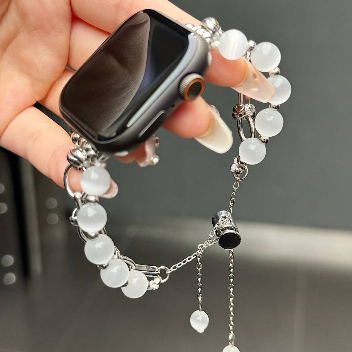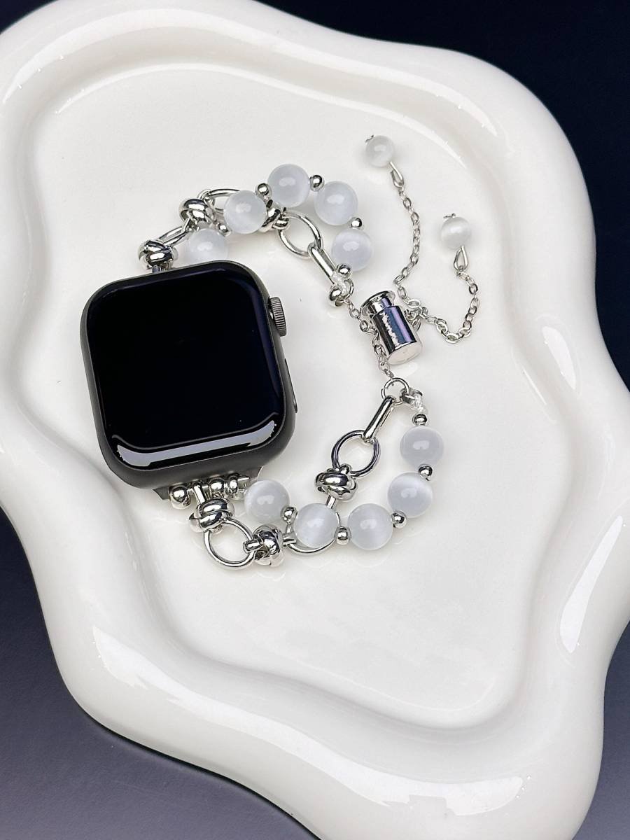 Elevate your Apple Watch with this stunningly beautiful and chic beaded bracelet band. Designed for the modern woman, this strap blends the sophistication of jewelry with smartwatch functionality, featuring lustrous Cat’s Eye style beads and elegant metal accents.