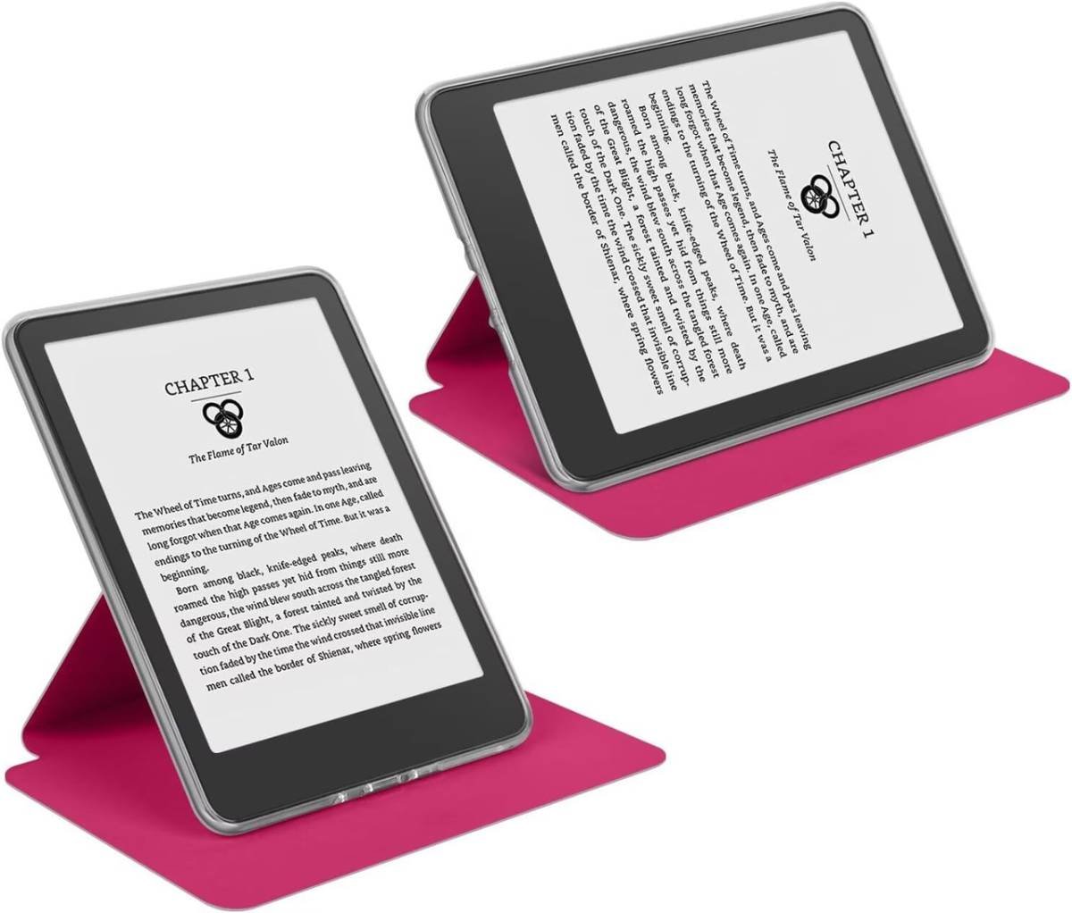 360° Rotating & Detachable Magnetic Case for 7″ Kindle Paperwhite 12th Generation (2024) – Auto Wake/Sleep, Hands-Free Stand, Clear Back Cover (Rose Red)