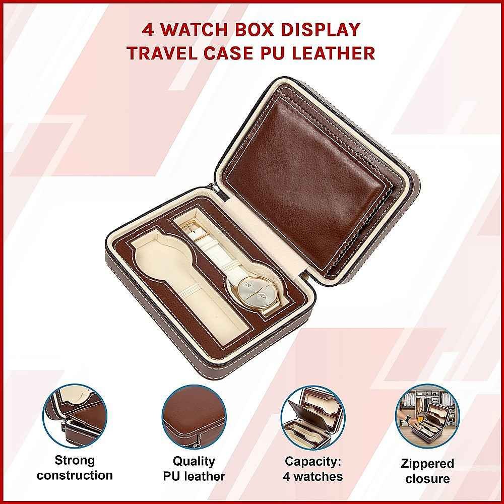 4 Watch Box Display Travel Case PU Leather
