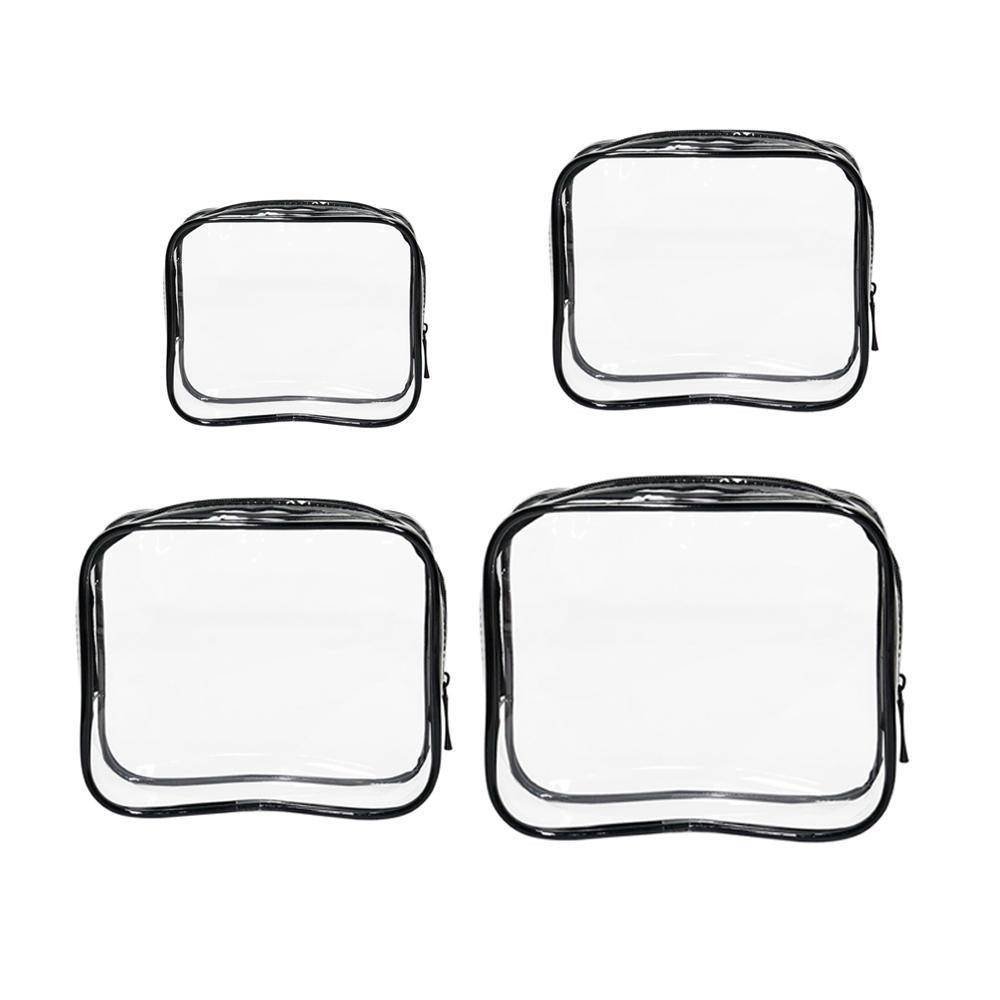 4pcs Durable PVC Cosmetic Bags Easy to Clean Multiple Sizes and Colours 9 Shades – 4pcs-Black