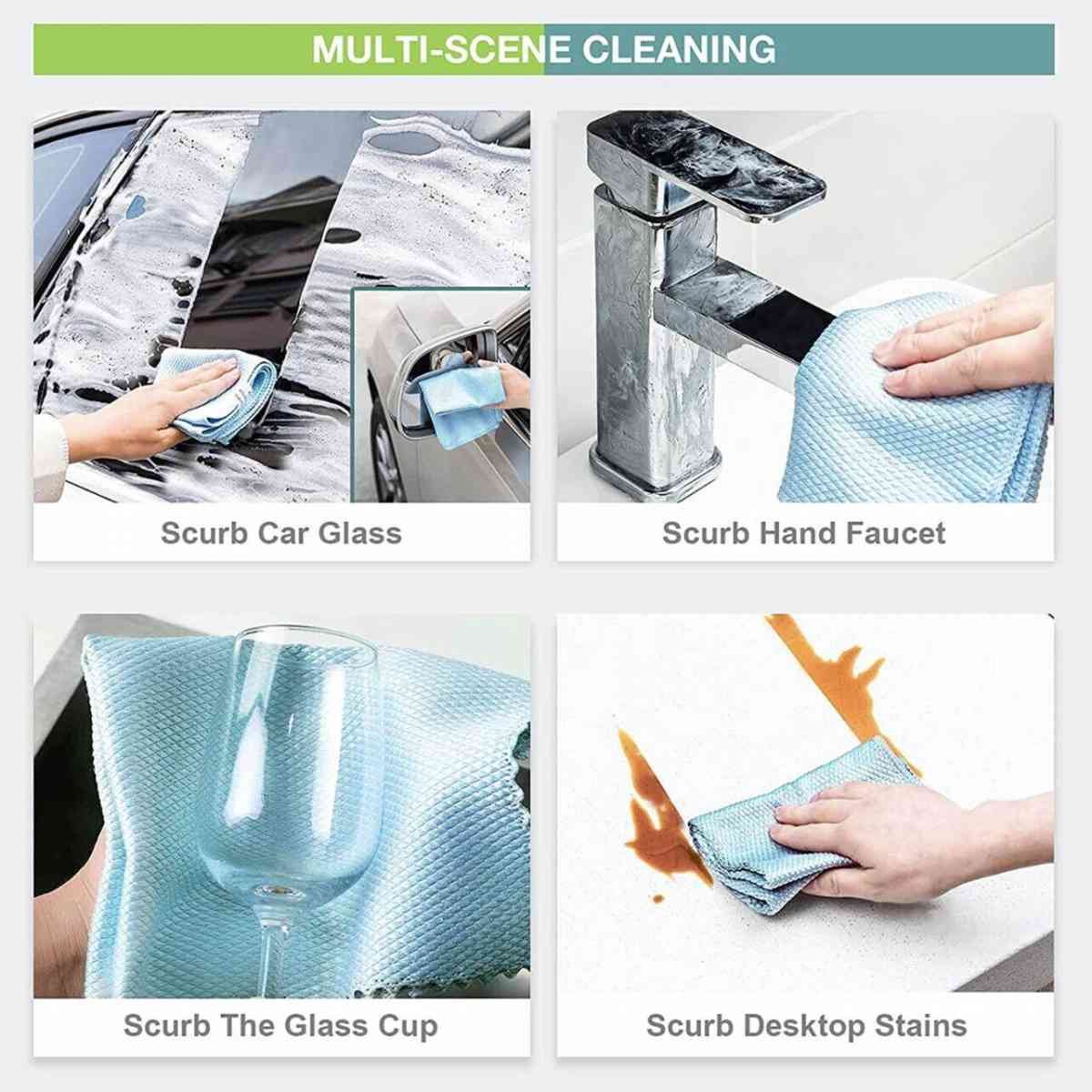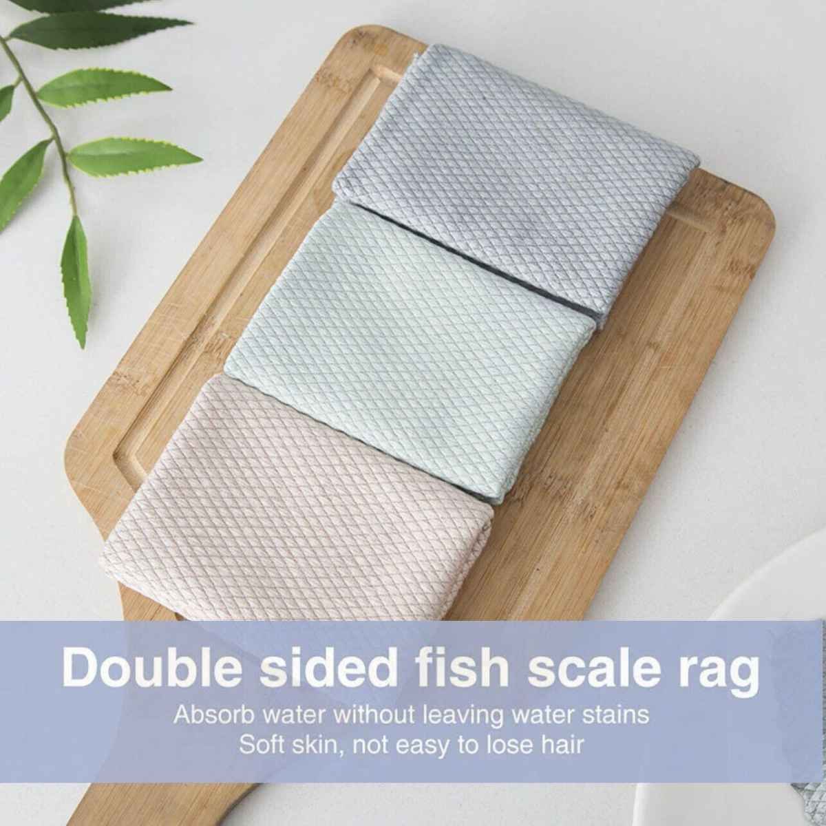 5X Fish Scale Microfiber Cleaning Cloth Dish Washing Glass Wipe Reusable Kitchen – 5Pcs-30cm*40cm