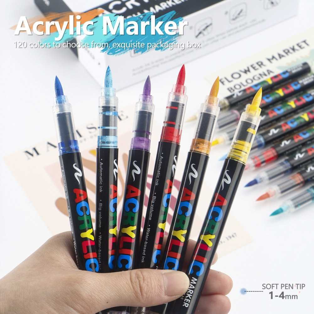 60 Colour Set Vibrant Cyan Acrylic Marker with Soft Brush Tip – 13.8 cm Professional Art Pen