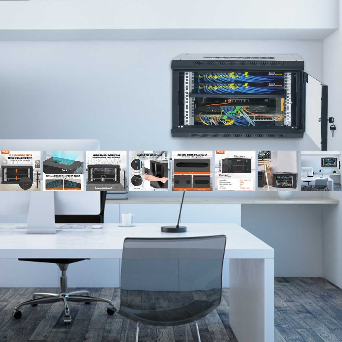 The locked glass door ensures the security of data and equipment. Wall mount rack enclosure server cabinet is ideal for use in public places such as offices, effectively protecting the security of your devices.