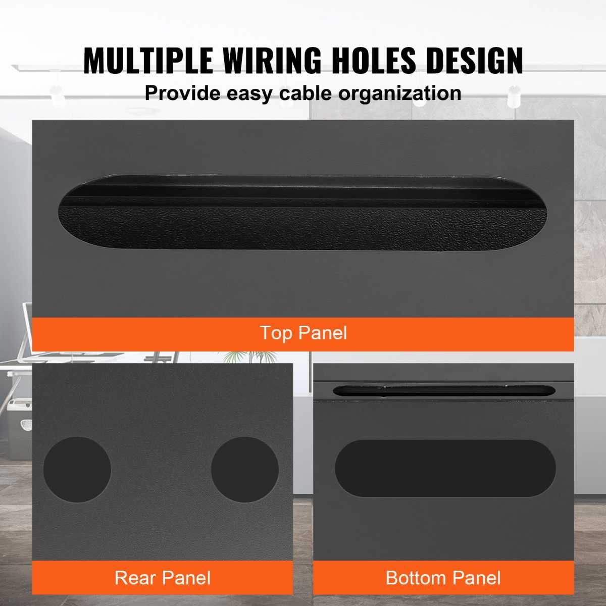 Fully adjustable square-hole mounting rails of the wall mount server cabinet facilitate device installation. Wiring holes on the top, bottom, and rear panels provide you with easy cable routing.