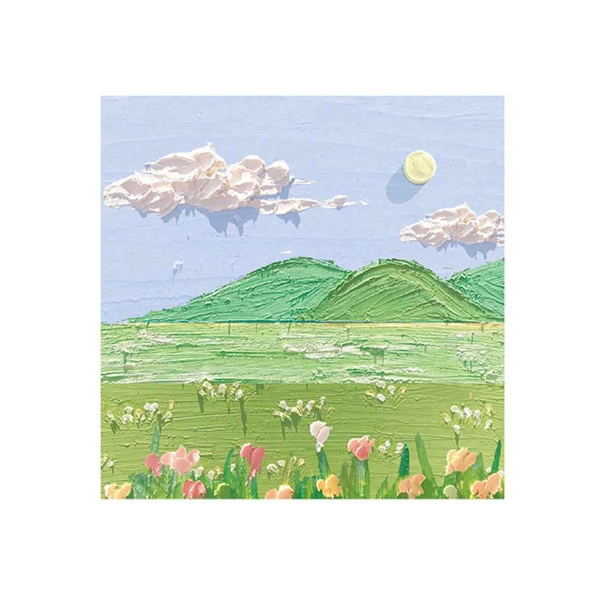 Art-Inspired Designs: Each sticky note showcases a unique landscape oil painting, offering a variety of scenes that brighten up your workspace.