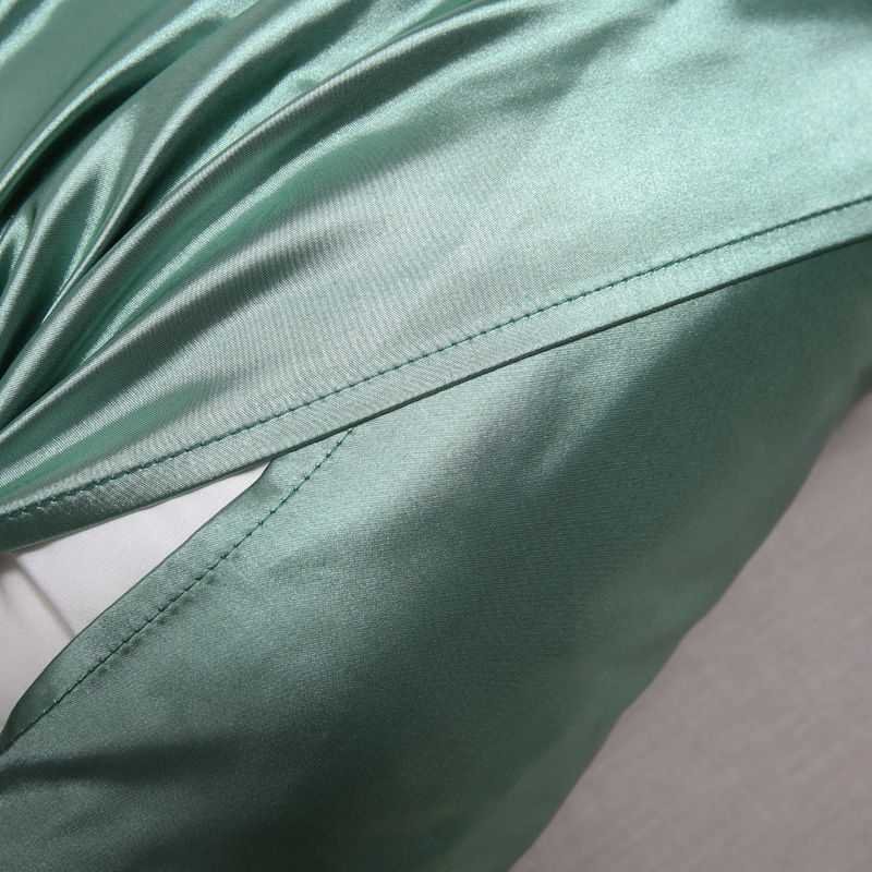This pair of silk-like pillowcases blends luxurious texture with practical envelope design, ideal for upgrading your bedding with a sleek, soft touch.Luxurious Silk-Like FabricCrafted from smooth, shiny silk-like material (green solid color), it feels