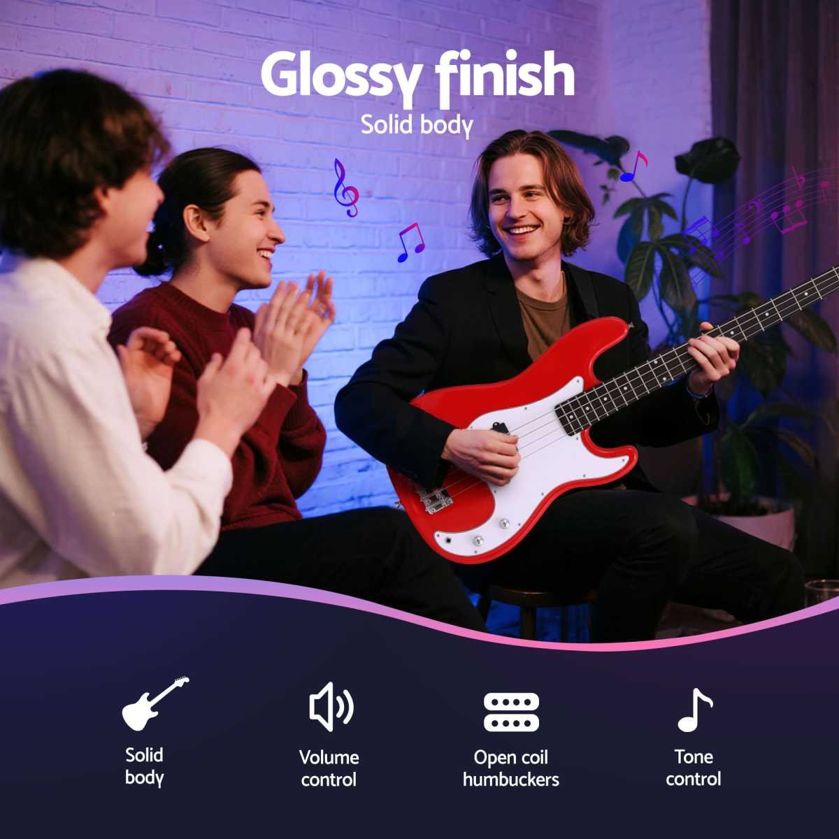 Alpha Electric Guitar Bass 47 Inch Set Kit 40W Bass Guitar Amplifier Guitar Stand Folding