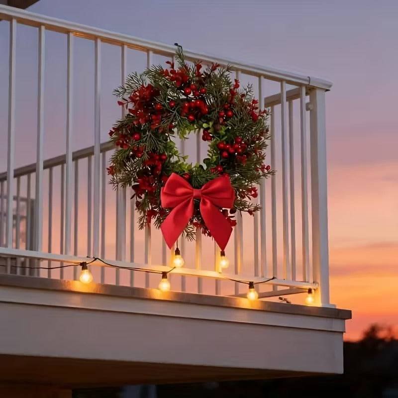 Artificial Christmas Wreath with Red Bow (2pcs)