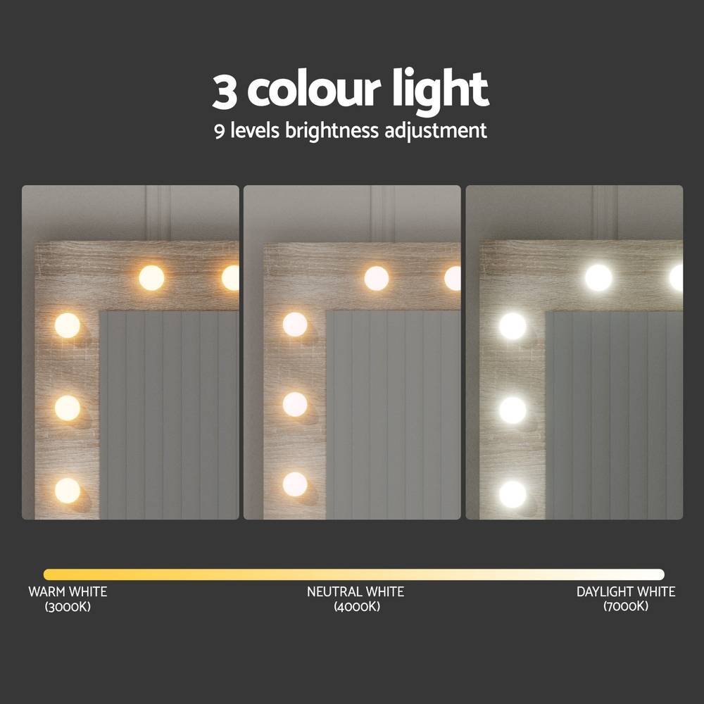 Artiss Dressing Table Set Stool 12 Led Bulbs Wood