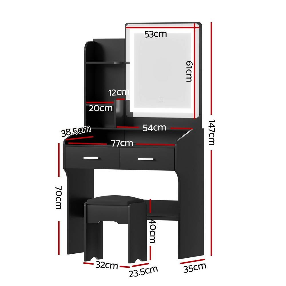 Artiss Dressing Table Set Stool Led Black