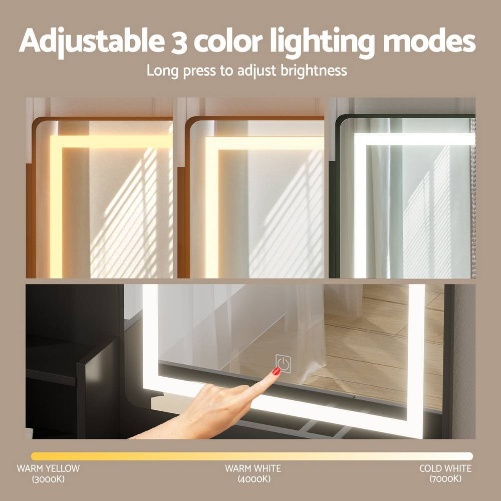 Upgrade your beauty routine with the Artiss LED Dressing Table. Featuring a Hollywood-style makeup mirror with an LED stripe, this vanity offers three adjustable light modes��warm, cool, and natural��for perfect lighting every time. The two spacious drawers ensure your beauty essentials stay neatly organised, while the anti-drop panel provides added safety and stability. The foam-padded stool adds comfort for extended use, and the sleek, easy-to-clean design ensures low maintenance. Ideal for bedrooms or professional settings, this modern vanity is the perfect blend of functionality and style.
