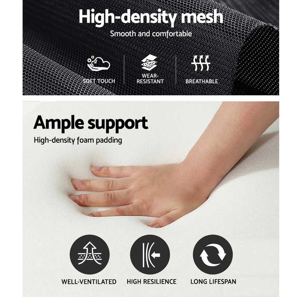 Our Artiss Matrix Office Chair takes work and relaxation seriously. Fact is, the chair integrates both perfectly to give you a premium chair that does more than just luxurious seating. It is durably constructed with a Y-shaped back frame for sturdiness. The highly breathable mesh means that you are never hot and bothered with long sitting hours as the chair is always well-ventilated. The S-shaped lumber support keeps your back comfortable while the headrest can be adjusted to suit your head. Better still, the chair can be reclined to 150° to suit work, leisure, relaxation and every purpose in between. Together with its retractable footrest and flexible armrests that adjust with back recline, the chair is simply a good seat to keep your feet up for a well-deserved break. Not least, firm base features mute castors that not only prevent floor scratches but also allows quiet and smooth mobility together with the omni-directional seating.