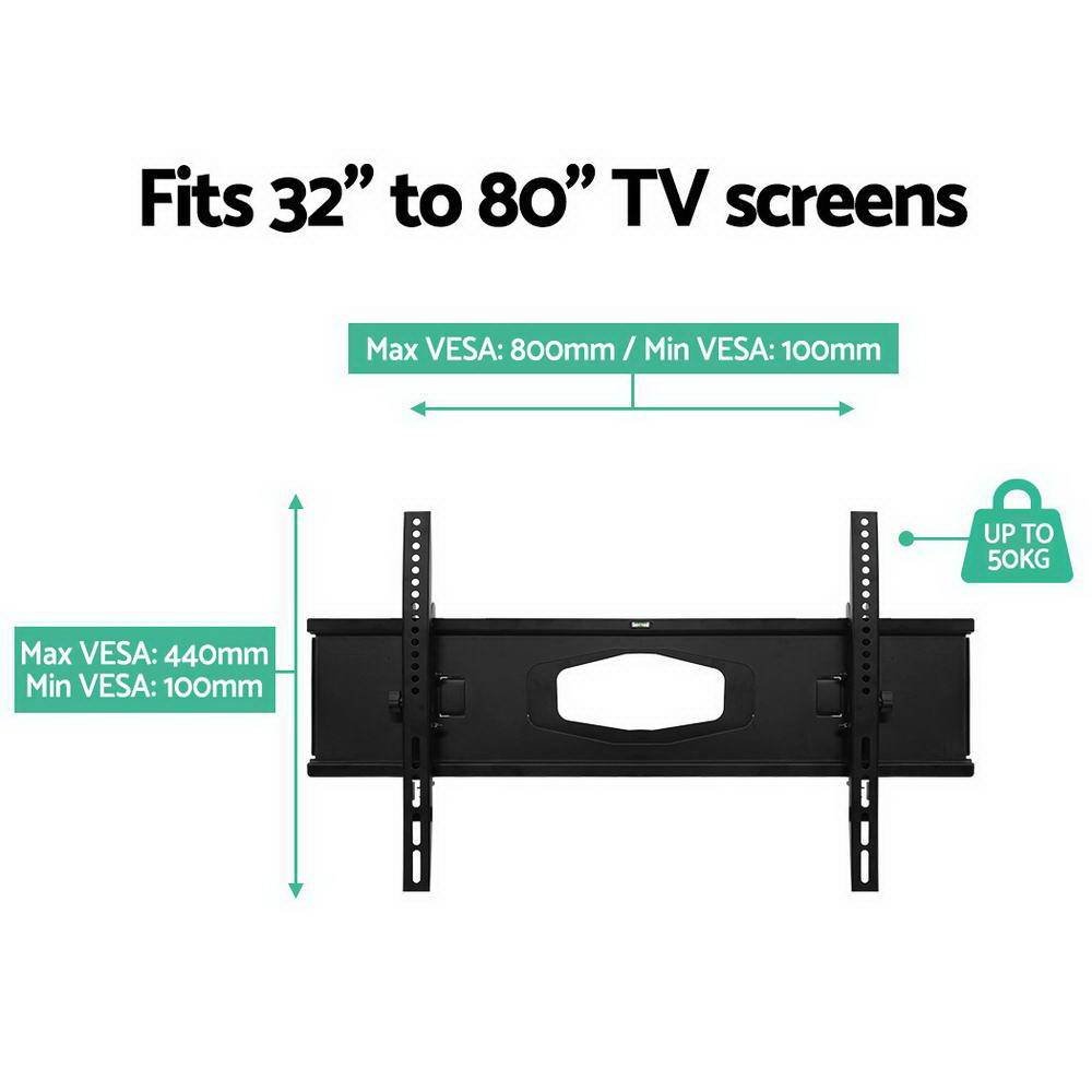 Short of space for your TV? Perhaps our Artiss TV Wall Mount can help. Our TV wall mount features a 1.5mm thick powder-coated iron frame that can handle a maximum weight of up to 50kg. The slimline mount allows for various VESA measurements to fit TV screens from 32" to 80" easily. Better still, the mount allows for tilt and swivel so that you can adjust your TV to suit your most comfortable eye line for more enjoyable viewing. Plus, the six-arm frame also enables the TV to be extended or retracted when required. Suitable for concrete or brick wall use, the Artiss TV Wall Mount is definitely the way to space-saving epic TV entertainment.