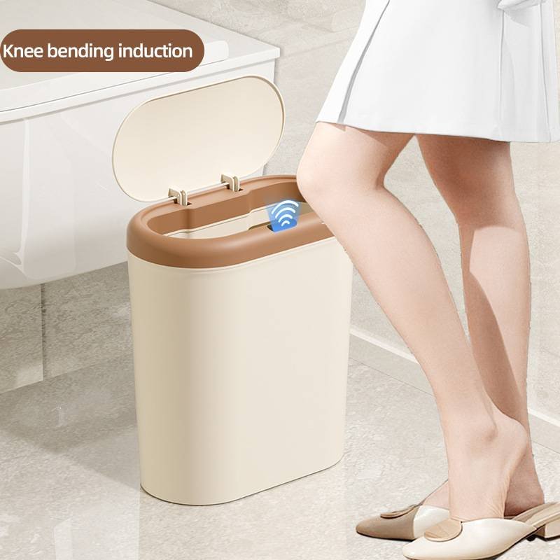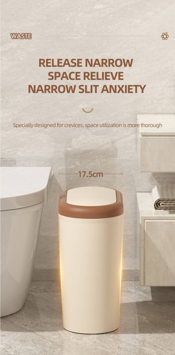 Beige and Brown Smart Sensor Trash Can – 15L Capacity, Compact Design for Home Use with Automatic Induction Opening(Three sensor modes)