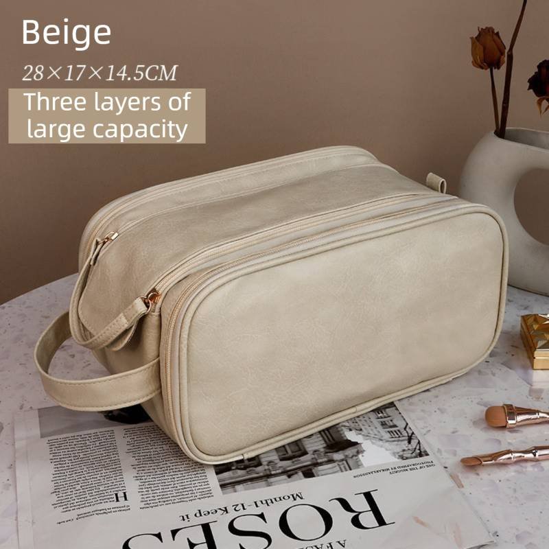 Keep your skincare, makeup, and toiletries perfectly organized with our Large Capacity Premium Makeup Bag. Crafted from high-grade TPU leather, this bag combines a luxurious, supple feel with rugged durability and water resistance. The innovative double-zipper design creates two main compartments, allowing for efficient dry and wet separation—perfect for storing damp face towels away from your dry eyeshadow palettes. Whether you’re heading on a long-haul flight or a weekend getaway, this lightweight and expandable organizer ensures all your beauty tools stay protected, upright, and easy to find.