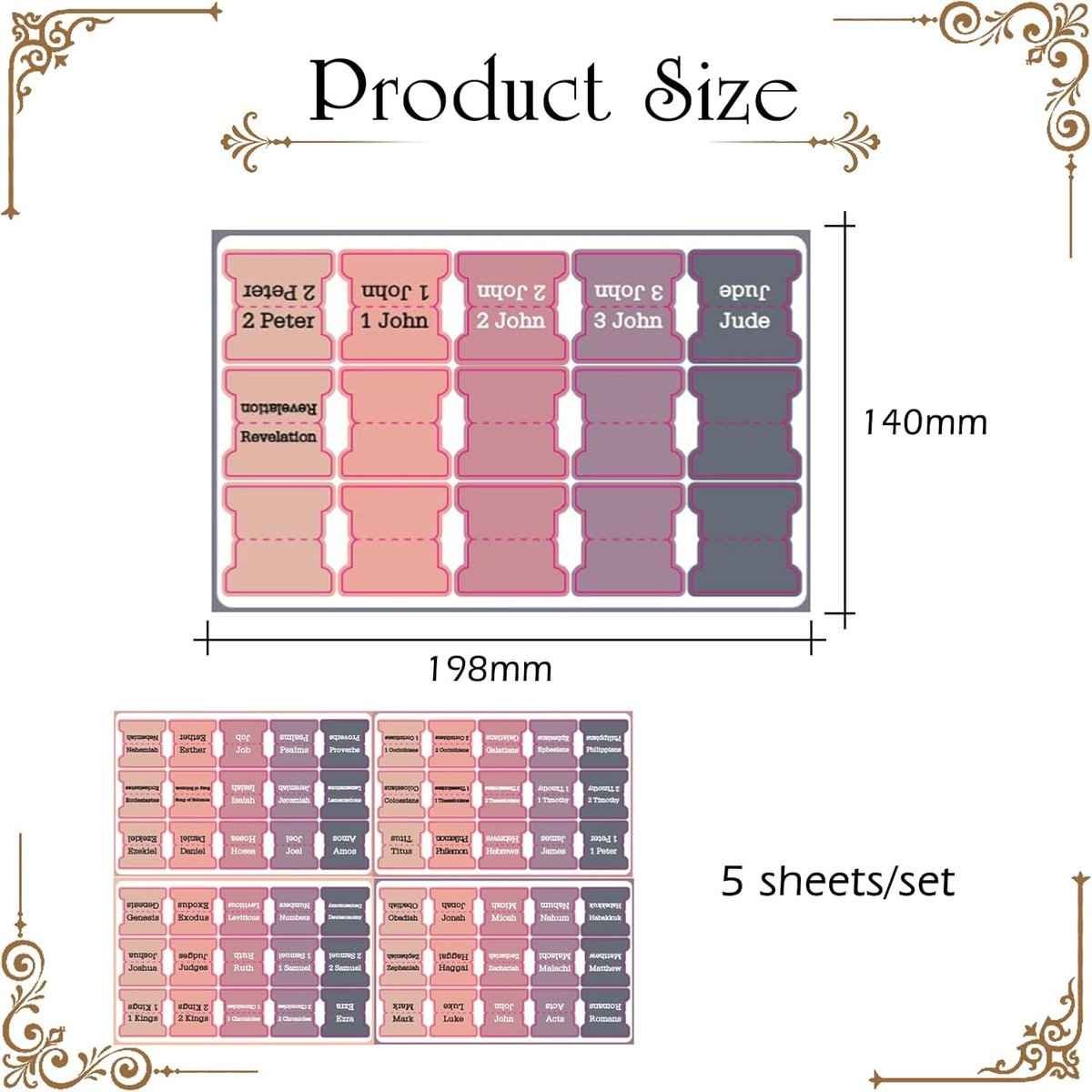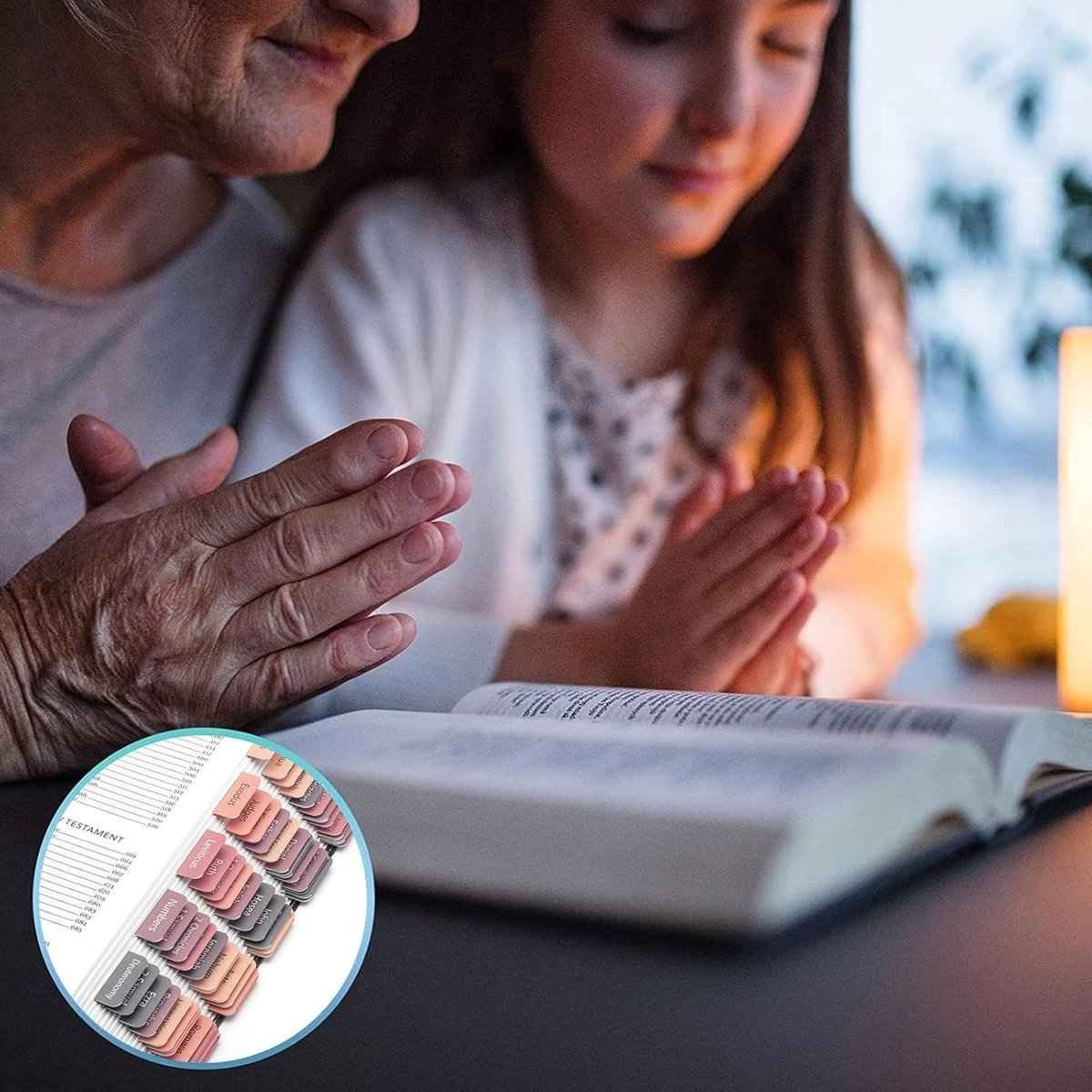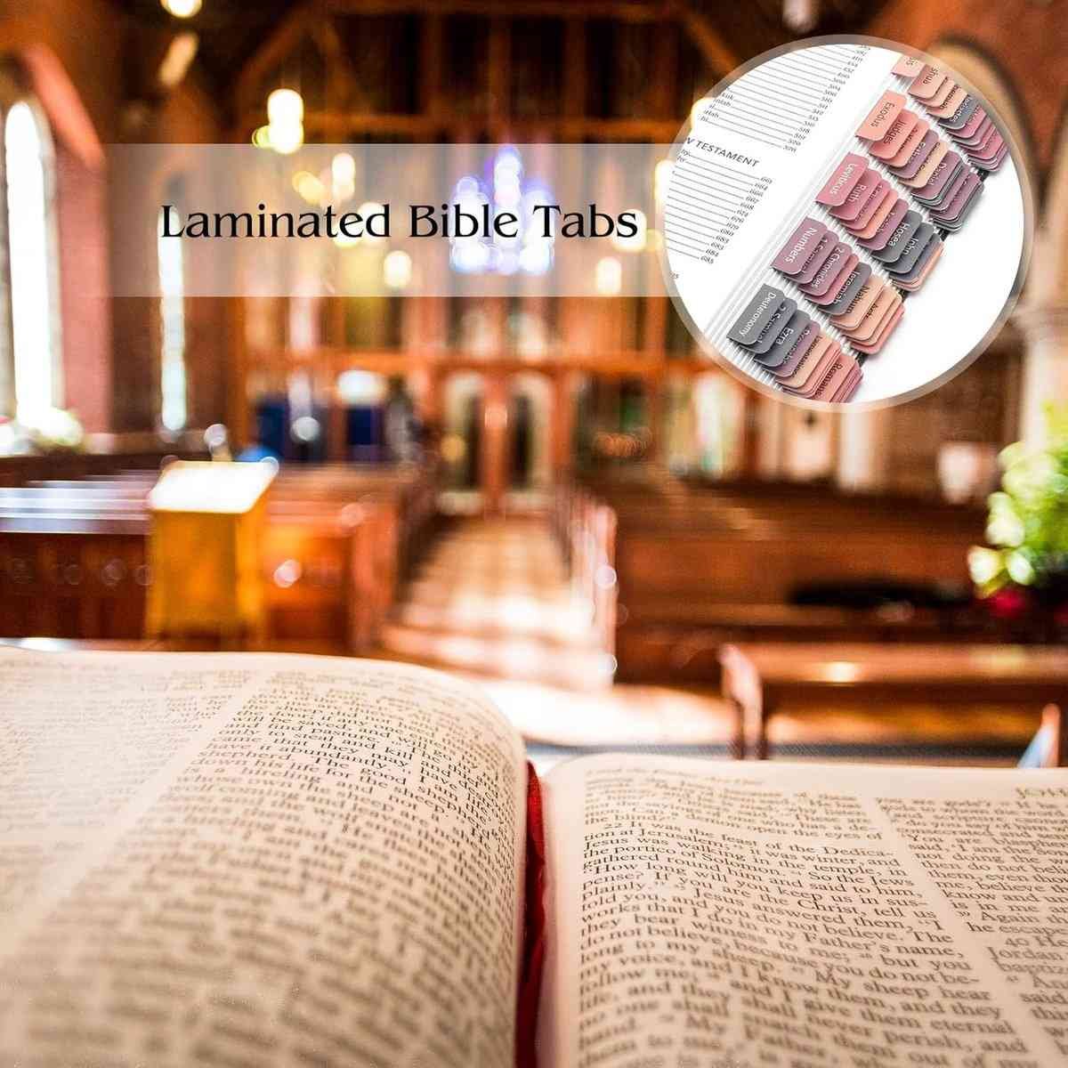 Bible Tab Stickers Self-Adhesive – Tabs Paper – Accessories – Bible Study – English Version – Easy to Read and Use Bible Journaling – Pink-Gray – 75 Laminated Bible Tabs