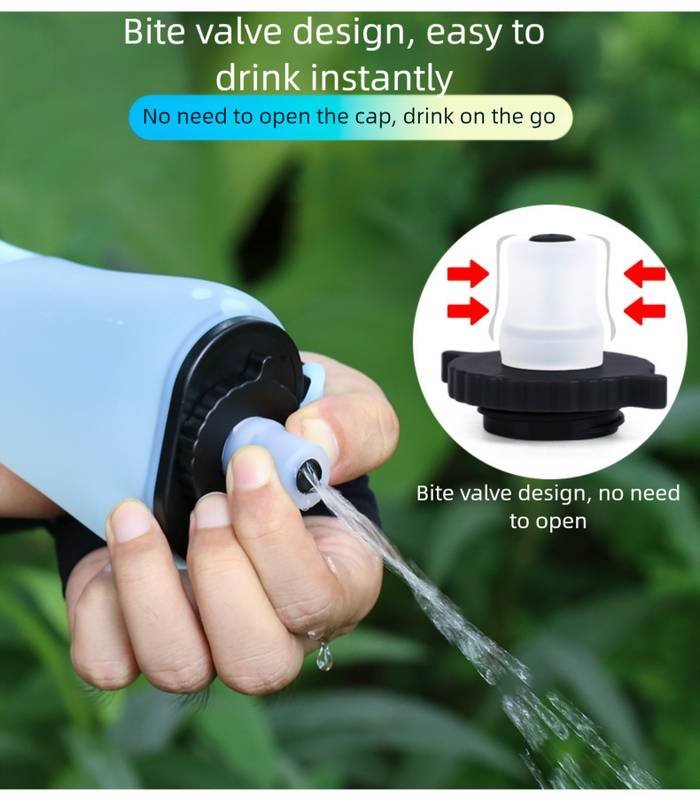 - Effortless Hydration with Bite Valve: The high-flow bite valve allows you to drink easily with a simple squeeze or bite, sealing automatically after each sip to prevent leaks. No need to unscrew caps or break your stride.