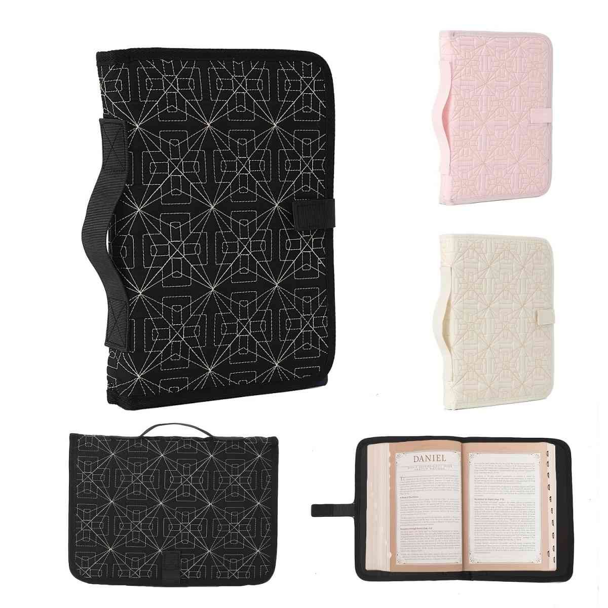 Black Elegant Quilted Bible Cover – Protective Book Case with Carry Handle