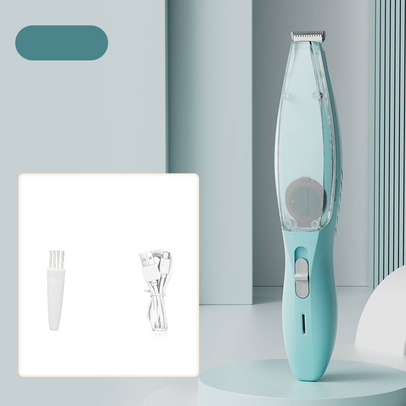 Blue Rechargeable Pet Grooming Clipper with Built-in Vacuum – Low Noise Hair Trimmer for Dogs & Cats