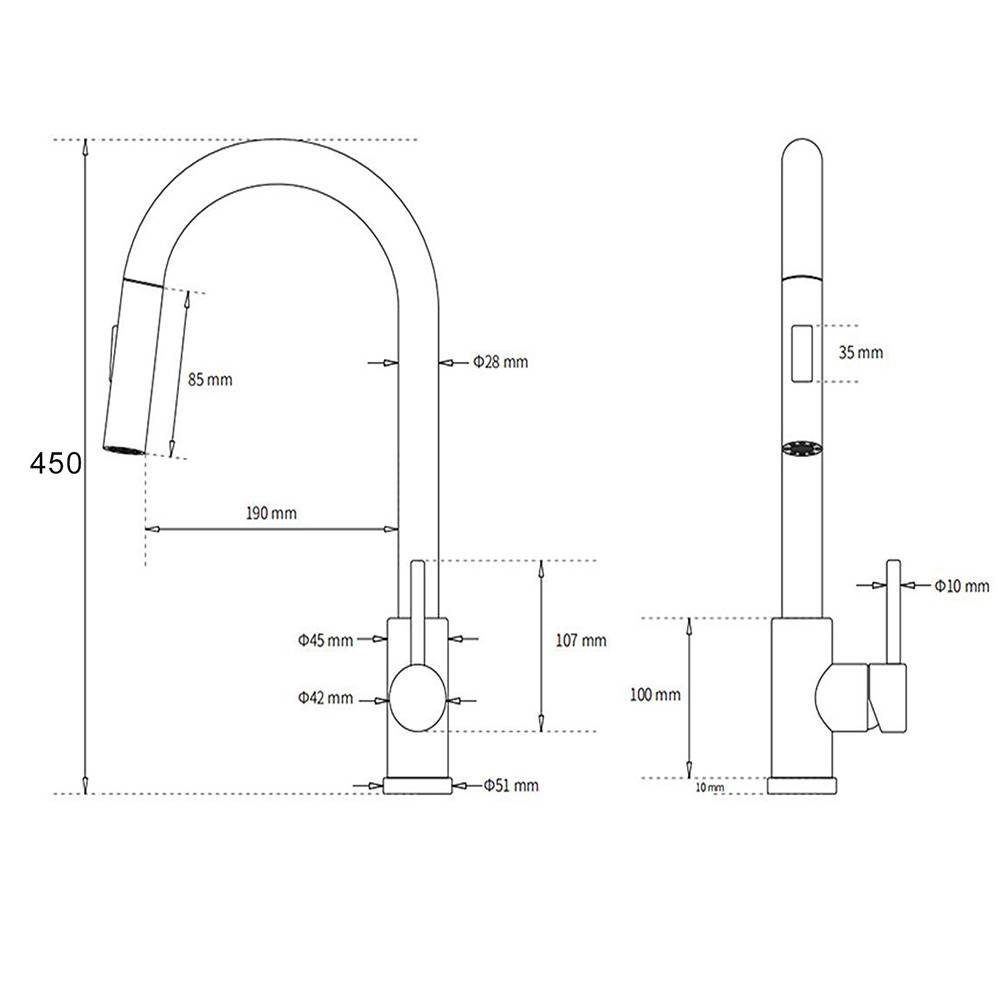 - Long pull out hose for a flexible washing, with a gravity ball for self-retraction function