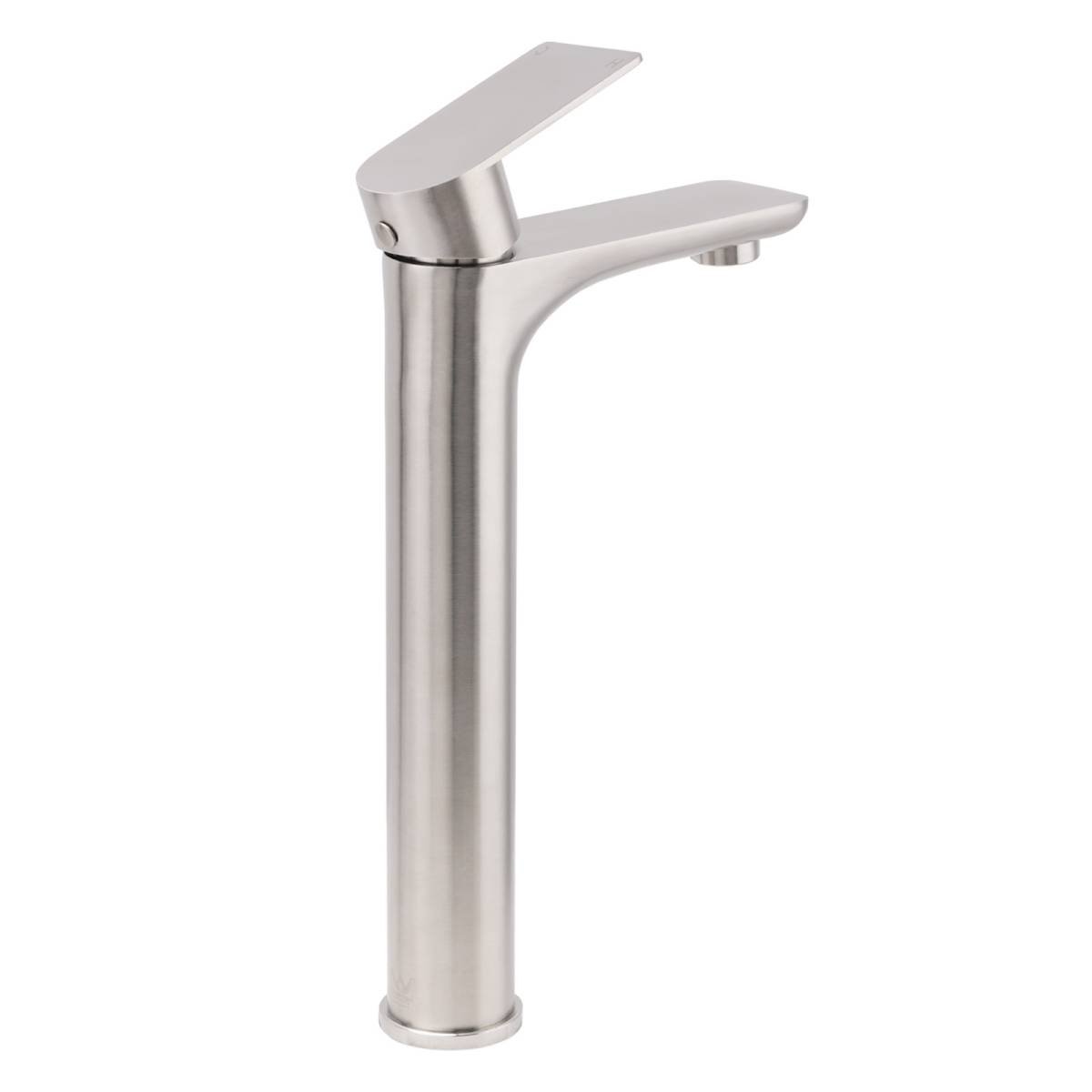 Brushed Nickel Rounded Edge Tall Basin Mixer Kitchen Vanity Faucet Tap Spout Set