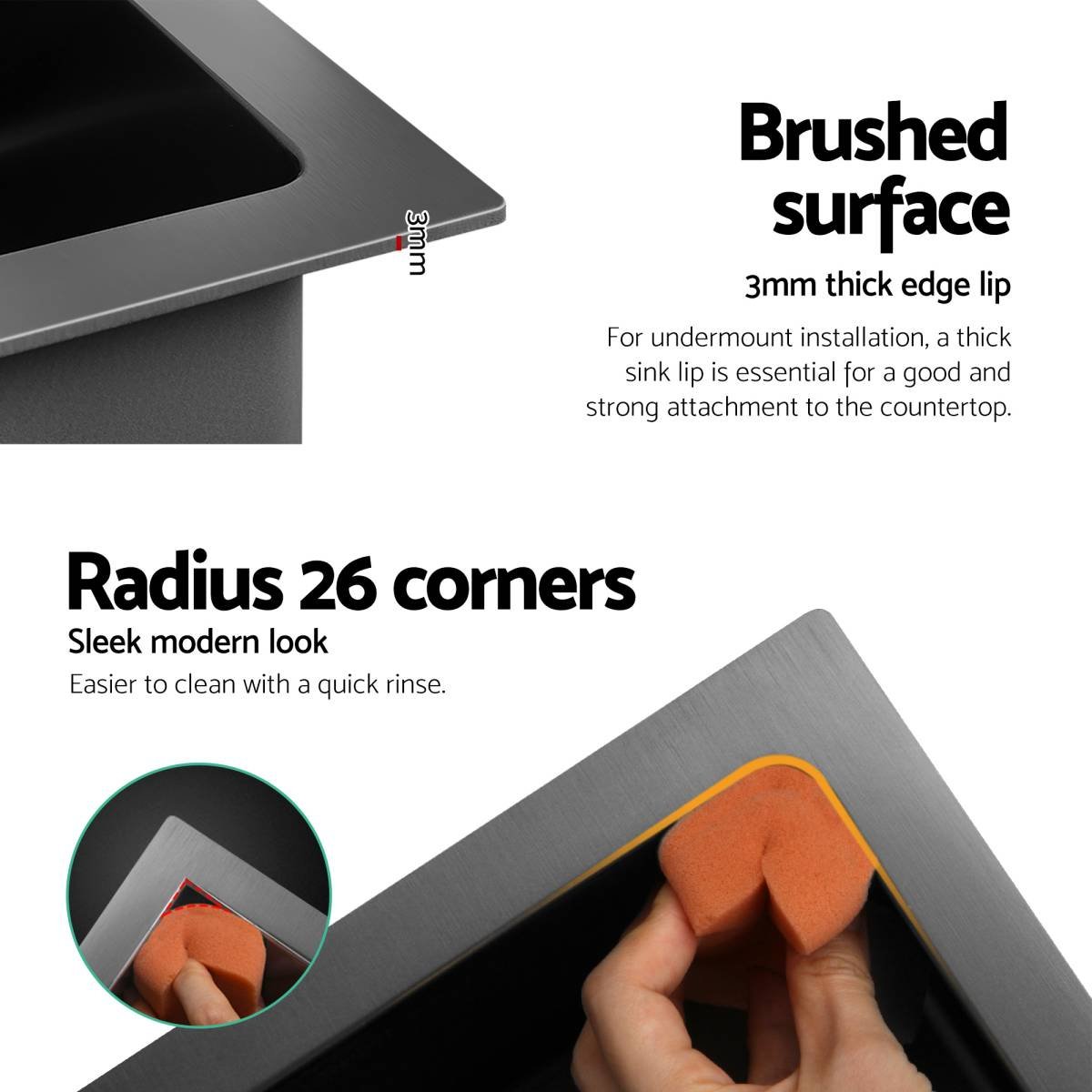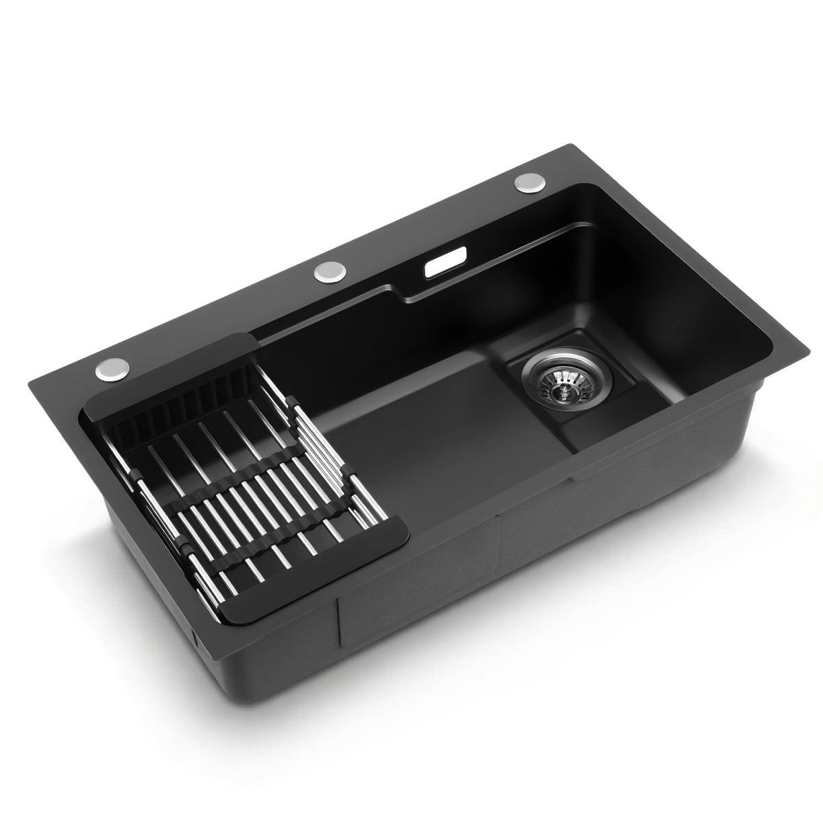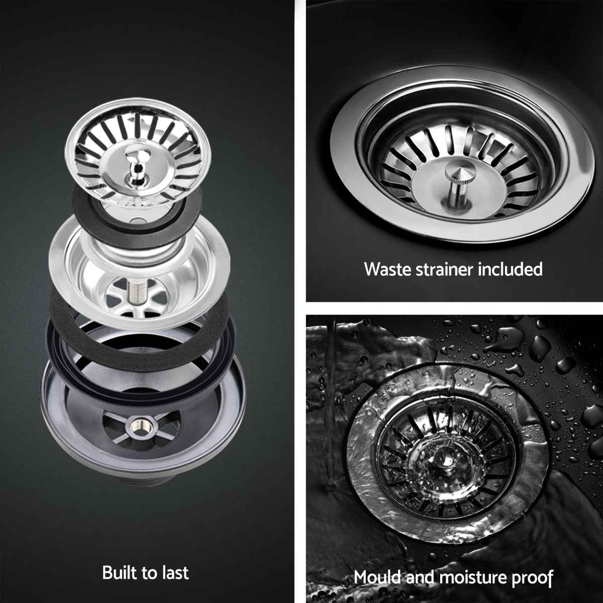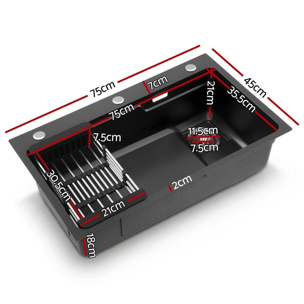 Cefito Kitchen Sink 75X45CM Stainless Steel Basin Single Bowl Drain Part Black