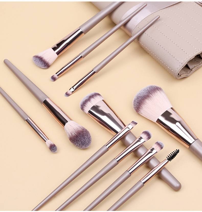 Champagne 11 Pcs Makeup Brush Set – Complete Brush Kit with Travel Case