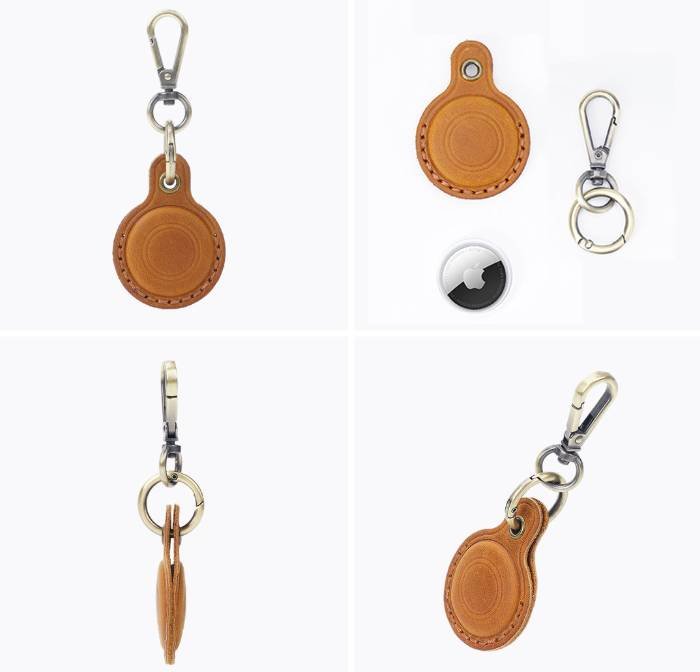 This product is a leather accessory and does not include the AirTag device. While durable, please supervise pets if attached to a collar, as chewing may damage the leather. Keep small parts away from young children to avoid choking hazards.