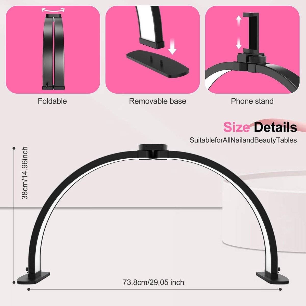 High performance: Our curved moonlight nail lamp uses powerful LED lights for exceptional illumination. Ideal for both professional and amateur nail technicians, it boasts a long lifespan and low energy consumption. The curved design ensures even light distribution, reducing shadows and delivering perfect results every time. Elegant and practical half-moon design: The half-moon lamp combines style and functionality. The unique arc design enhances light coverage and provides even nail illumination. Perfect for nail salons: The light angle can be easily adjusted, evenly illuminating each nail and increasing work efficiency. Adjustable lighting modes and colors: This nail lamp features 3 adjustable light colors and 10 brightness levels to meet various needs. Easily switch between warm, neutral, and cool light and adjust the brightness from low to high. The simple one-button operation ensures a smooth and efficient nailing process and perfectly adapts to your specific requirements. With Phone Holder: The manicure salon table lamp features a built-in phone holder for added convenience. Perfect for watching nail tutorials, communicating with clients, or enjoying music while receiving a nail treatment. The sturdy holder accommodates a variety of phone sizes, enhancing your overall experience and providing a comfortable, hands-free setup. Professional Salon Quality: Our professional nail lamp offers salon-quality performance, suitable for both in-salon and home use. Made from high-quality materials with advanced manufacturing processes, it ensures durability and reliability. Whether you’re a professional or a hobbyist, the Moonlight curved nail lamp delivers superior nail results. We have always been committed to providing our customers with high-quality products and satisfactory service. The store offers hundreds of nail products to meet all your needs. Excellent Product: Each product has been carefully selected; it is not only practical but also of impeccable quality. Satisfactory service: If you are not satisfied with our products or have any questions, please do not hesitate to contact us.