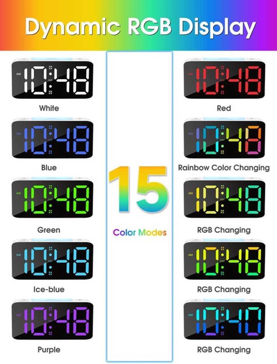 Wake up effortlessly and start your day feeling refreshed with the Wekker Digital Alarm Clock. With its extra-loud alarm, dynamic RGB display, and convenient USB charging ports, it’s the ideal alarm clock for heavy sleepers, teenagers, and adults. Whether you struggle to wake up or are looking for a stylish and functional alarm clock, this model offers everything you need to make your mornings easier. Extremely loud alarm – Never miss your alarm again! Are you a heavy sleeper and always ignore your alarm? This alarm clock is equipped with a powerful alarm of up to 105 dB, guaranteeing a gentle wake-up. Thanks to its five adjustable volume levels, you can tailor the sound to your preferences and choose the perfect way to wake up. Dynamic RGB display with large numbers. The 6.3-inch LED display with its large, clear numbers ensures easy time reading, even from a distance. Its modern RGB design offers 15 different color settings, allowing you to personalize the look of your alarm clock. Ambient Night Light for a Relaxing Sleep Environment: The integrated night light function creates a soothing atmosphere in your bedroom. Choose from seven different colors, perfect for creating a soft light in the evening or as a night light for children. Whether you want to unwind before bed or just need enough light to prevent you from stumbling at night, this alarm clock has exactly what you’re looking for. Convenient Dual Alarm Settings and Snooze Function: Do you have to get up at different times? The dual alarm function allows you to set two different alarm times, ideal for couples or people with varying schedules. In addition, the alarm clock has a 9-minute snooze function, allowing you to stay in bed a little longer without worrying about being late. Charge While You Sleep with USB Ports: This alarm clock isn’t just an alarm clock, but also a convenient charging station. Thanks to its two USB charging ports (DC 5V/1A), you can easily charge your smartphone, tablet, or other devices while you sleep. This way, you start the day with a full battery and save space on your bedside table. The ideal Wekker for everyone. Whether you’re a heavy sleeper, looking for a modern RGB alarm clock to brighten up your bedroom, or simply want a practical alarm clock with extra features, the Wekker digital alarm clock is the perfect choice. Order now and wake up on time and refreshed every morning!