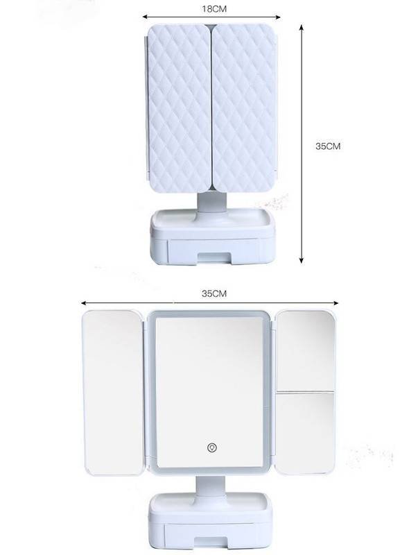 Transform your beauty routine with the Elegant Tri-Fold Shell LED Vanity Mirror, a stylish and multifunctional makeup companion. This smart mirror features a unique shell-inspired tri-fold design with built-in LED lights for perfect illumination, a convenient storage drawer, and a sleek white finish. Ideal as a thoughtful gift, it combines practicality with elegance for daily use or travel.