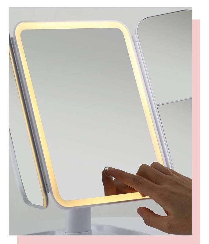Elegant Tri-Fold Shell LED Vanity Mirror – Smart Makeup Gift with Storage & Illumination
