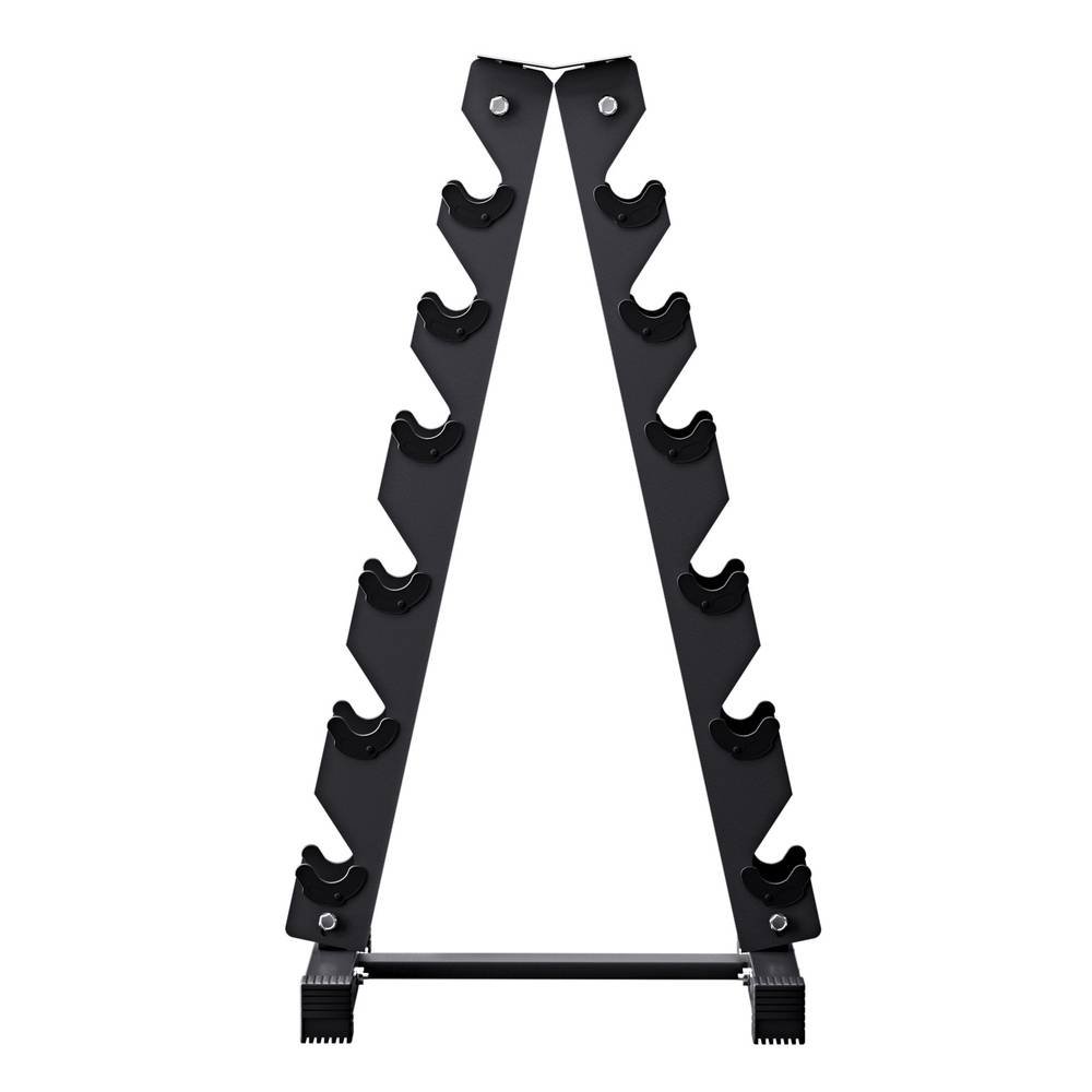 Organize your gym with our 6-Tier Dumbbell Rack. It features a stable A-frame triangular design that can hold up to 200kg of weights, offering a practical storage solution for your workout equipment. Its easy and safe design ensures stability during rigorous workouts, while its compact size allows for space-saving storage. The rack is easy to install, so you can get your gym up and running in no time at all. Made with high-quality materials, our dumbbell rack is durable and perfect for any home gym or fitness studio. Keep your weights organized and easily accessible with our smart storage solution.