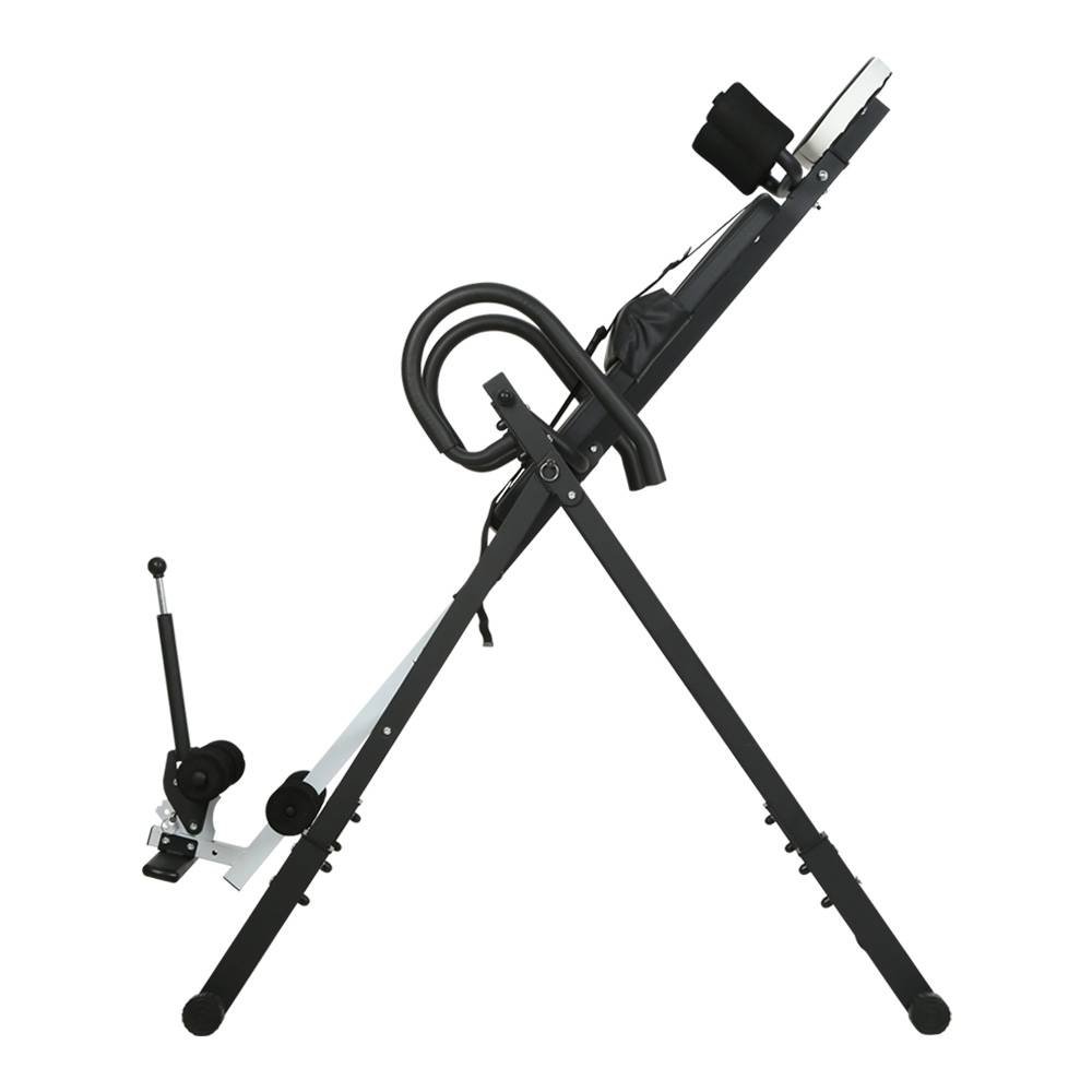 If you often suffer from back pain after a day of work, our Everfit Inversion Table may be the solution for you. Hanging upside down can help to improve flexibility, reduce nerve pressure, realign the spine, and relax tense muscles. The extra wide backrest is padded with thick high-density foam to provide you with adequate support and comfort. The inversion level is adjustable up to 180 with three pre-set locking positions. The safety belt and locking ankle clamp always keep you securely in place, the removable cushioned lumbar support provides added comfort, and the padded U-frame handles ensure that you always have a firm grip and can easily return to the upright position. The sturdy frame is constructed with industrial-strength powder-coated rust-proof steel and can support a maximum weight of up to 120kg. The height can be adjusted to accommodate all users. Best of all, the inversion table is foldable so you can easily store it away. Get a new perspective and feel the difference with an Everfit Inversion Table.