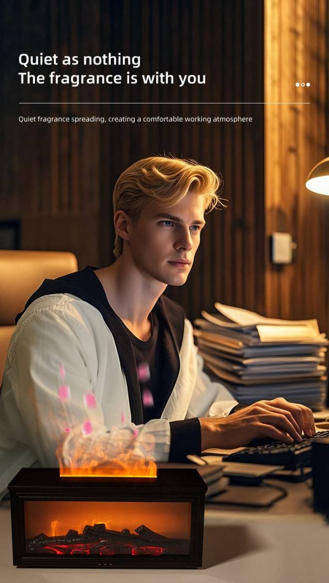 Create a warm and inviting atmosphere in any room with our Fireplace Flame Effect Aroma Diffuser. This unique device combines the functionality of an essential oil diffuser and a humidifier with the stunning visual appeal of a miniature fireplace. It uses ultrasonic technology to produce a fine, fragrant mist that won’t dampen your tabletops, helping you relax your mind and body. The diffuser features a realistic simulated flame effect, along with a 7-colour flame light option to create a cozy ambiance. Control the device easily with the included remote control or the buttons on the unit. Features include adjustable lighting, multiple timer settings (6, 8, and 10 hours), and a generous 280mL water tank for prolonged operation.