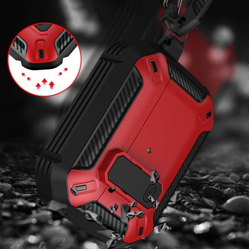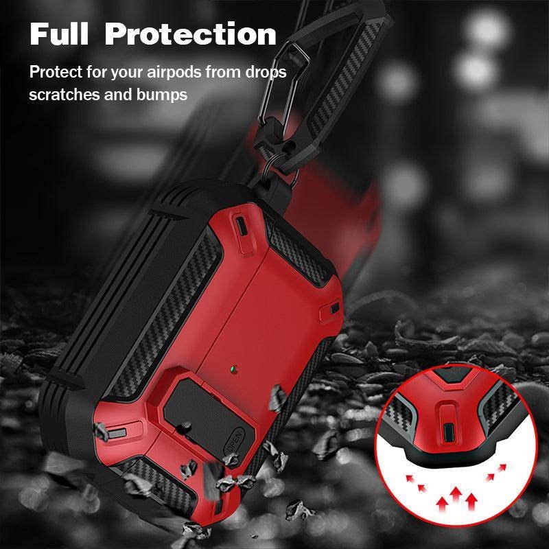 For Apple AirPods pro and pro2 Case Armor Earphone Heavy Duty Shockproof Cover – Black&Red For Airpods Pro