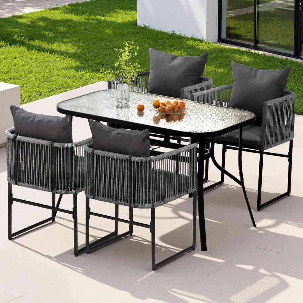 Gardeon 5PCS Outdoor Dining Set Table and Chairs Rope Patio Furniture Garden Black