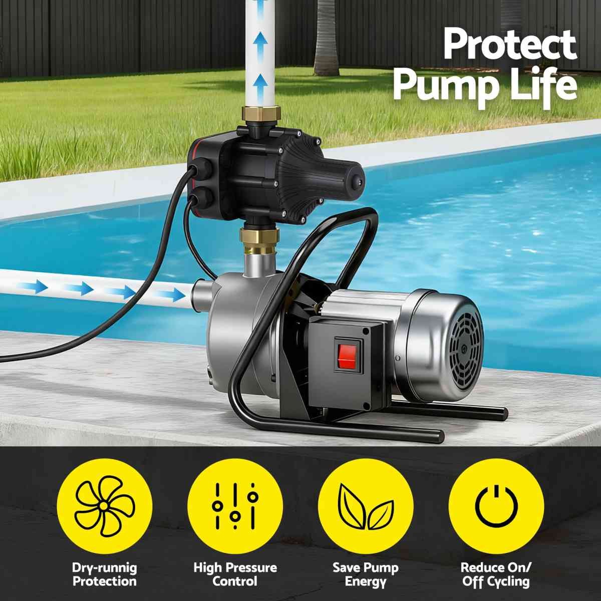 Turn your water pump into an automatic booster system! The GIANTZ Digital Controller features an LED display, adjustable settings, and dry-run protection to keep your water flowing and your pump safe.
