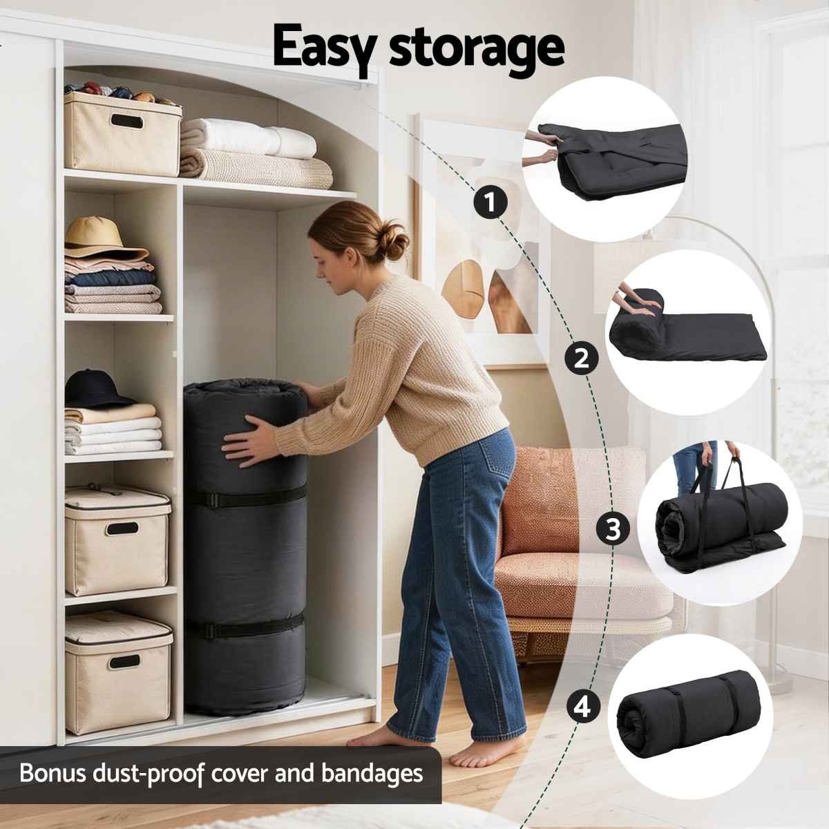 Transform any floor into a cozy sanctuary with our premium Japanese Floor Mattress. Whether you are hosting unexpected guests, heading out for a camping trip, or looking for a comfortable mat for floor yoga, our 10cm thick futon delivers the perfect balance of softness and support.