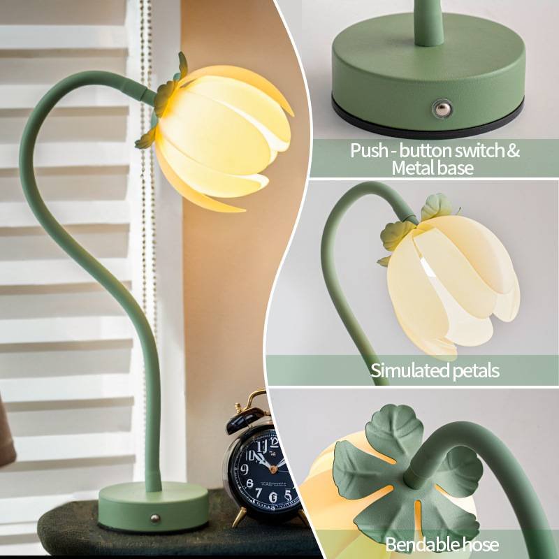 Green LED Tulip Desk Lamp – Flexible Gooseneck, Decorative Flower Table Light